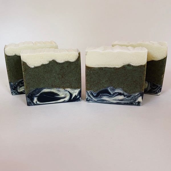 Tobacco & Bay Leaf cold process soap is hand poured in small batches so each bar will look slightly different. This soap contains walnut shells for exfoliation and is scented with a fresh mix of bay leaf, fir needle, cedarwood, bergamot, and tobacco.